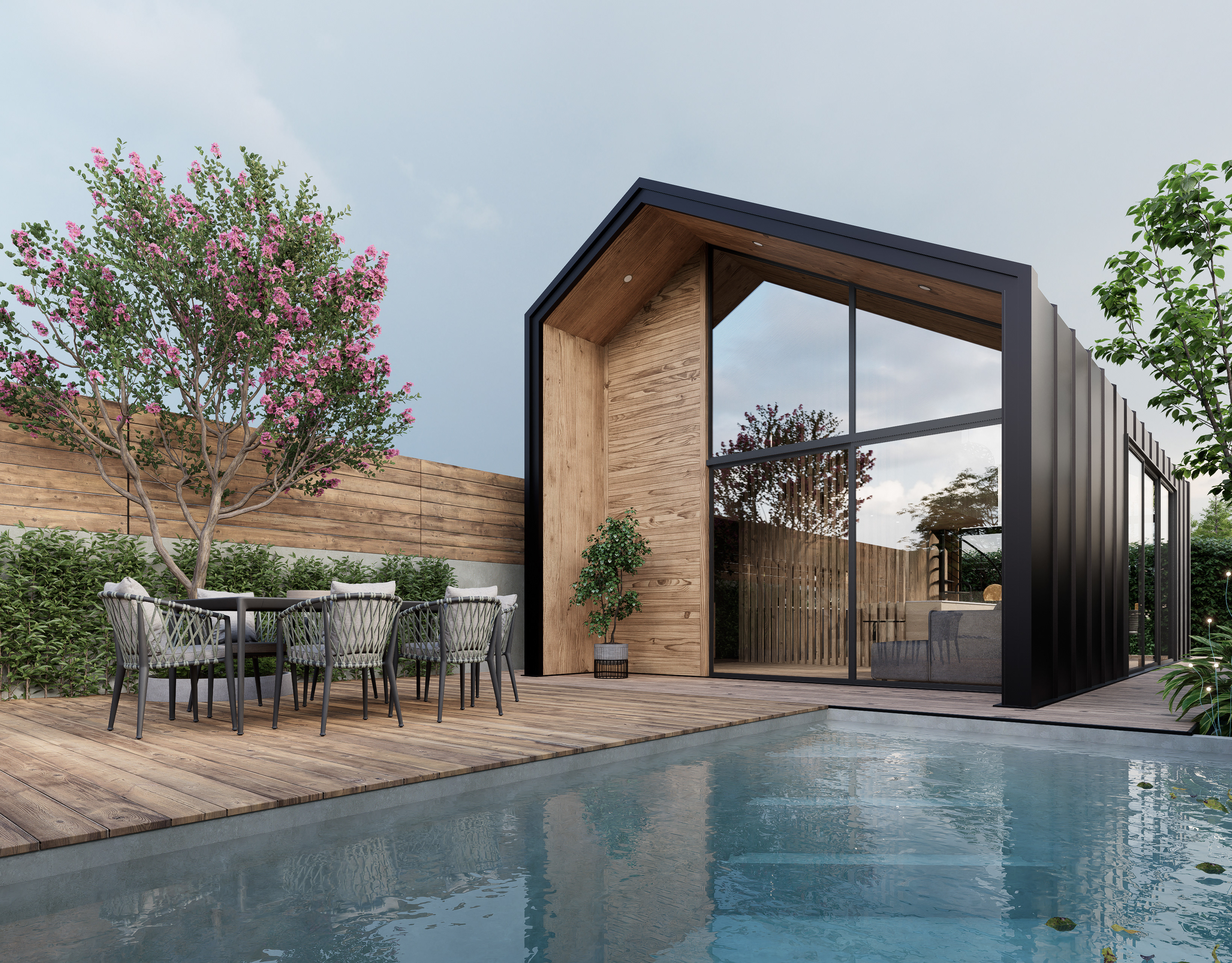 Small barn style home with pool